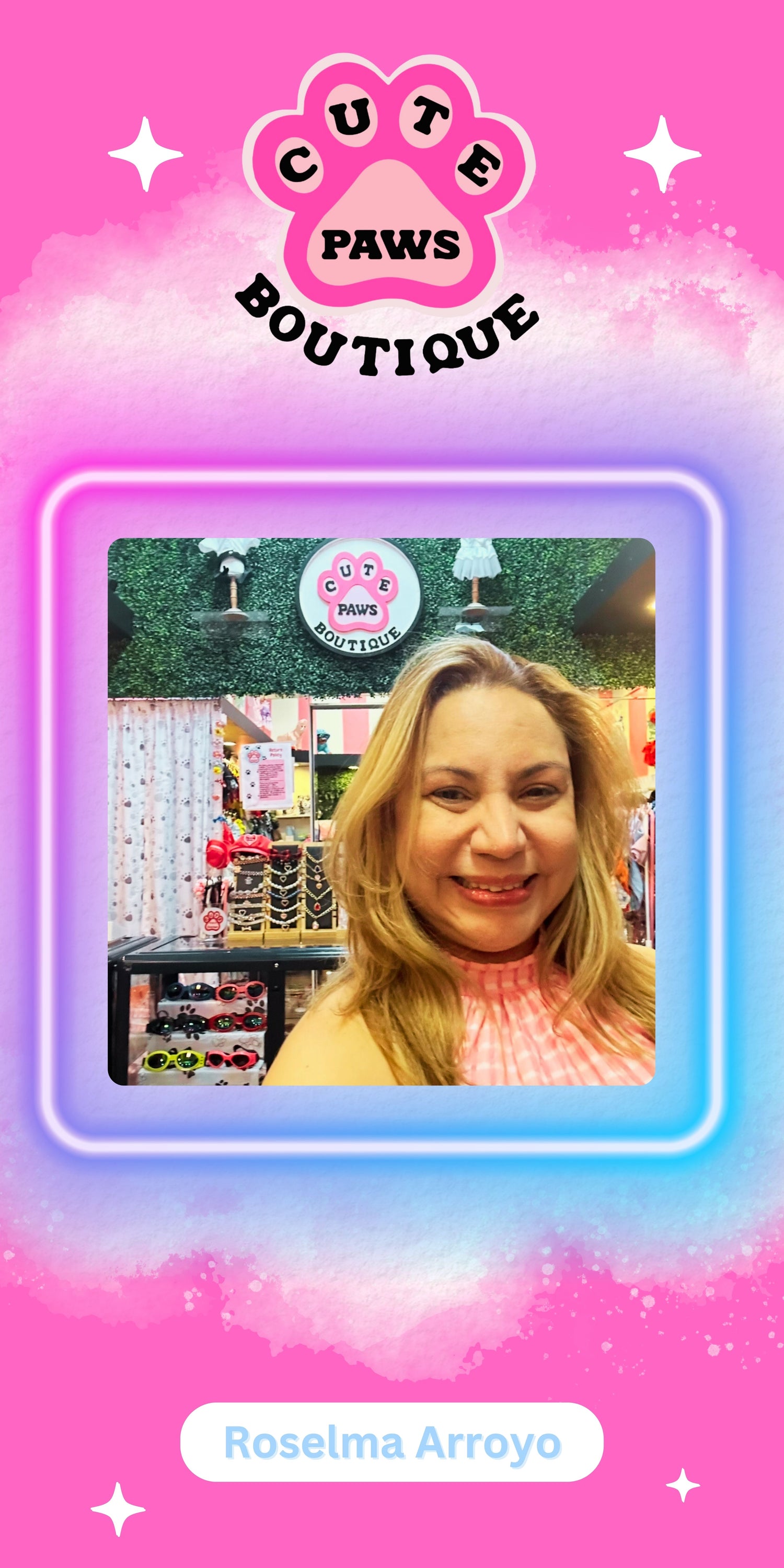 Cute Paws Boutique was born out of a dream, a spontaneous idea that took shape during a time when I felt lost, searching for answers in different directions. My name is Roselma Arroyo, a Florida resident, and one day I asked myself a life-changing question: "What do I enjoy and love the most?" The answer was undeniable: animals.